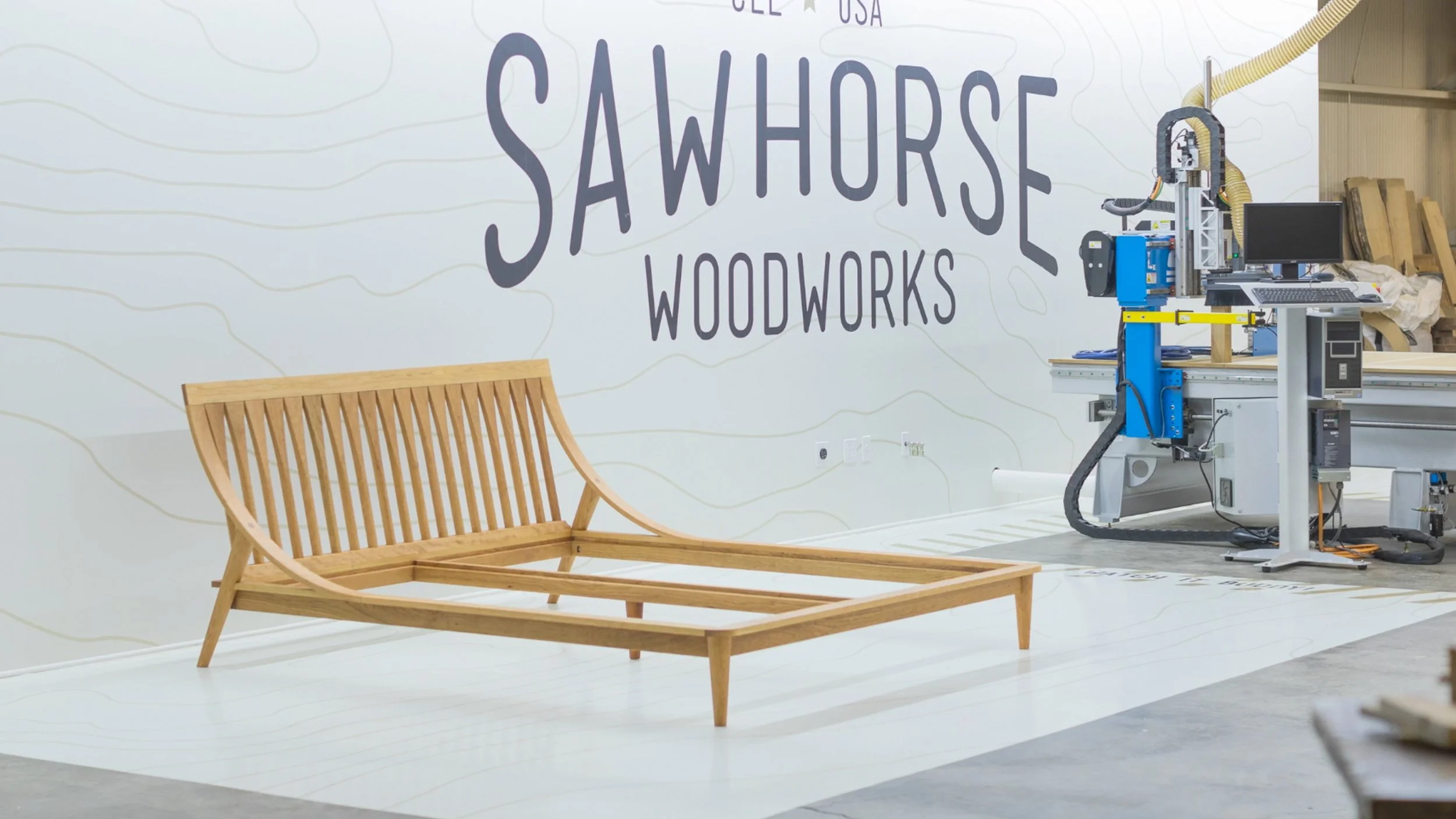 Branding for Sawhorse Woodworks including vehicle graphics and interior and exterior environmental design.